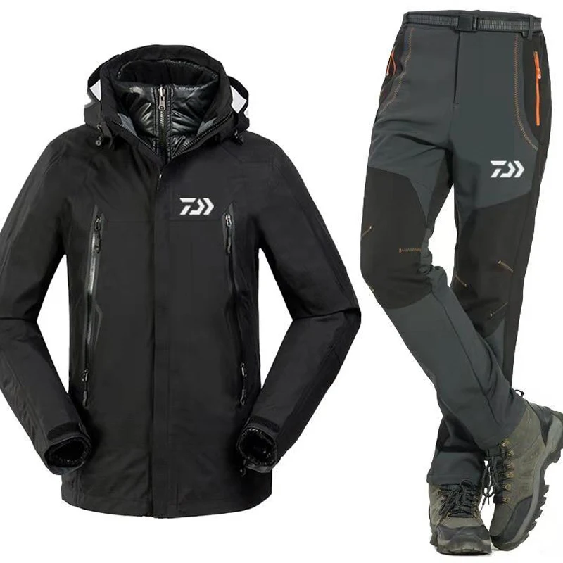 BEST 3pcs set New daiwa Fishing Clothing Sets Men Warm Outdoor Sports Wear Set Hiking Windproof Clothes
