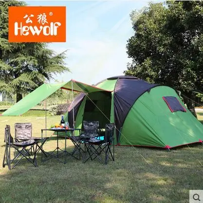 BEST Hewolf 4-6 Person UV Waterproof 2 Bedrooms 1 Living Room 2 layer hiking party family fishing beach